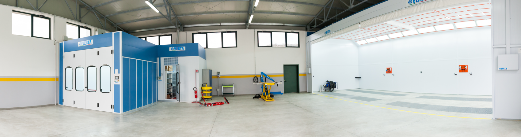La cabina forno e l'innovativa zona di preparazione e verniciatura Nova Verta consentono di lavorare in un ambiente totalmente asettico e controllato. A essi sono affiancati strumenti per l'essicazione rapida ad infrarossi.